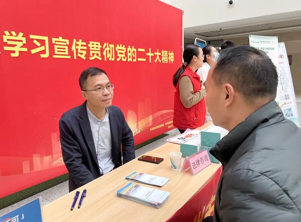 我院法律事务办公室工作人员通过悬挂宣传横幅、设置宣传展板、发放宣传资料等方式,为现场来往的职工群众讲解《医师法》《基本医疗卫生与健康促进法》《中华人民共和国献血法》《医疗保障基金使用监督管理条例》《人体器官移植条例》等相关法律法规,不断提高职工群众对宪法和有关法律的知晓率,真正让法治意识内化于心、外化于行,营造浓厚的普法宣传氛围。