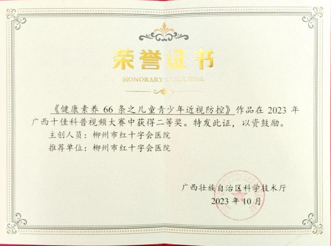 集团眼科医院/柳州市红十字会医院科普视频荣获“2023年广西十佳科普视频”