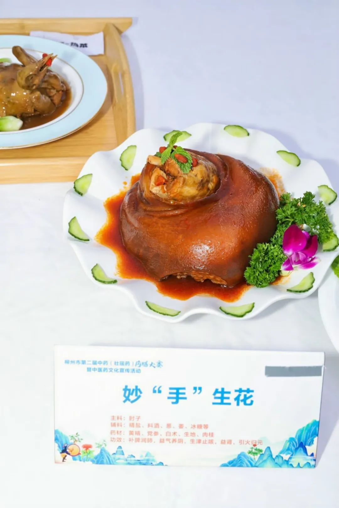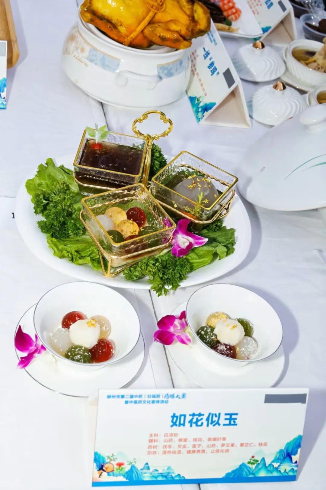 柳州市工人医院营养科和后社办携手中医科团队积极参赛,精心准备了四道独具特色的药膳作品:《如花似玉》、《驻红却白》、《妙“手”生花》、《内有乾坤》,从祛湿、养阴、活血、温补气血等多个维度满足了大众对健康的多样化需求,展现了中医食疗的独特魅力。