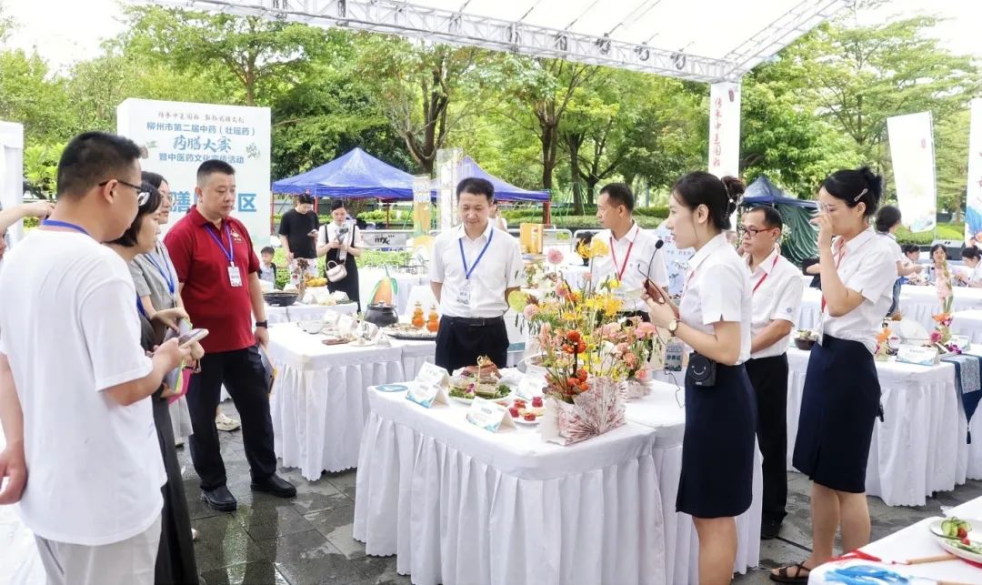9 月 7 日上午,柳州市第二届中药(壮瑶药)药膳大赛暨中医药文化宣传活动如期举行,活动现场吸引了众多市民前来观看。来自柳州市各级医疗机构的参赛队伍齐聚一堂,各展厨艺,以精湛的技艺和独特的创意,将中药(壮瑶药)与美食完美融合,为大家带来了一场视觉与味觉的双重盛宴。