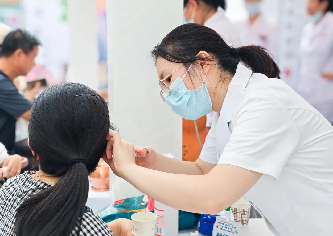 除了精彩的药膳比赛,活动现场还设置了中医药文化宣传展示区,柳州市工人医院中医科团队积极开展义诊活动,为前来咨询的群众答疑解惑,并进行了针灸、耳穴压豆、火龙罐、铜砭刮痧等特色中医技术展示。通过实际操作和讲解,让民众更加直观地了解和感受中医传统技术的独特魅力,加深了对中医药文化的认识和认同。