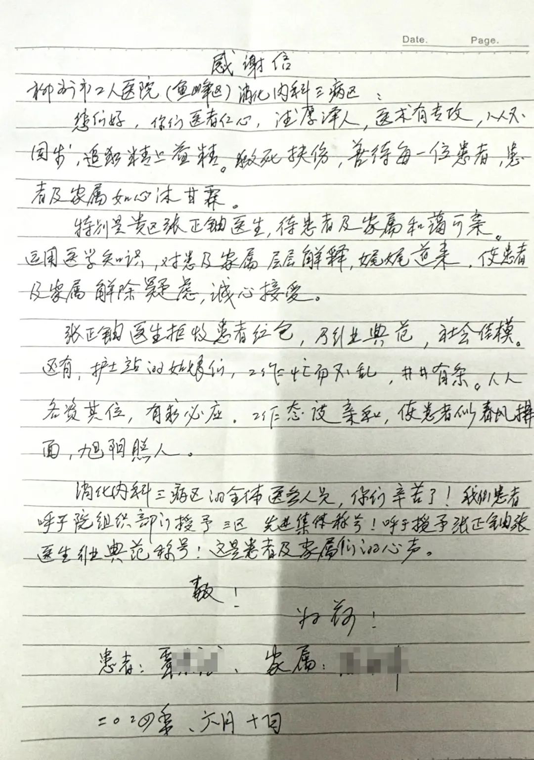 纸短情长,这封亲笔感谢信,不仅是对科室团队专业能力的认可,更是对医者仁心的深情赞美。在柳州市工人医院,像张正铀这样的医生还有很多,他们用自己的专业知识和爱心,为每一位患者带来健康和希望。