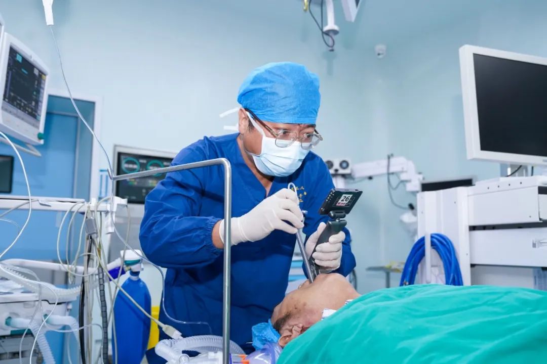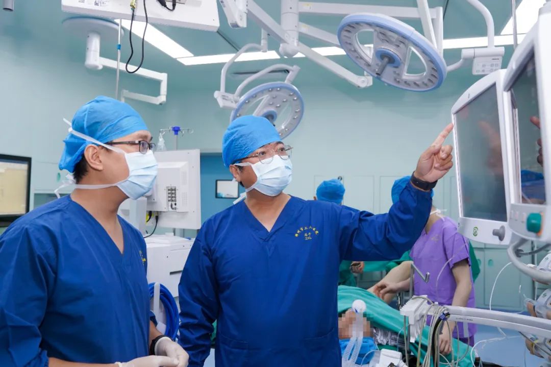 张延卓教授(右)依据病人情况进行麻醉临床教学