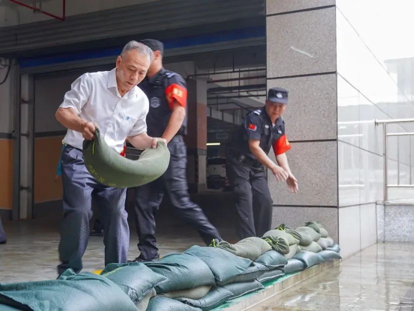 运送沙袋构筑临时防洪墙