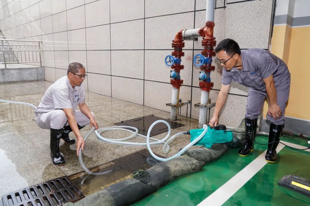 现场还进行了强降雨导致地下停车场内涝的应急处置演练。医院相关部门立即启动抽水泵进行排水,同时加强巡查和值守,确保医院重要科室的供电安全。各小组士气高昂,按照责任分工,团结协作,精密配合,经过近一小时的奋战,顺利完成预定演练。