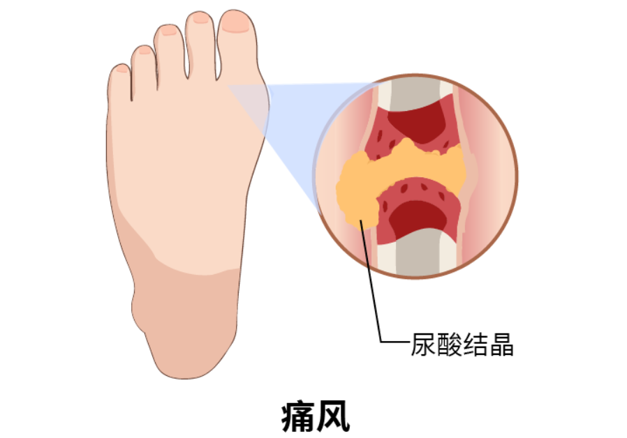 痛风是一种由于体内尿酸水平过高,导致尿酸盐在关节和软组织沉积而引起的炎症性关节病,其与嘌呤代谢紊乱和/或尿酸排泄减少所致的高尿酸血症直接相关,主要表现为反复发作的急性关节炎,疼痛、红肿、热感等症状,给患者带来很大的困扰。