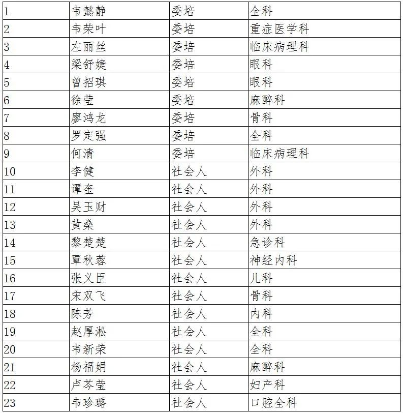 柳州市工人医院2021年第二批 住院医师规范化培训招生拟录取名单公示