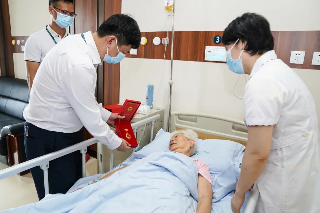 “得到这个纪念章,很开心!很激动!这是党对我的关心和肯定!”6月22日上午,柳州市工人医院特需病房里,今年87岁的退休老党员杨锡芳从院党委副书记梁茂元手中接过“光荣在党50年”纪念章时,神情既肃穆又难掩激动。