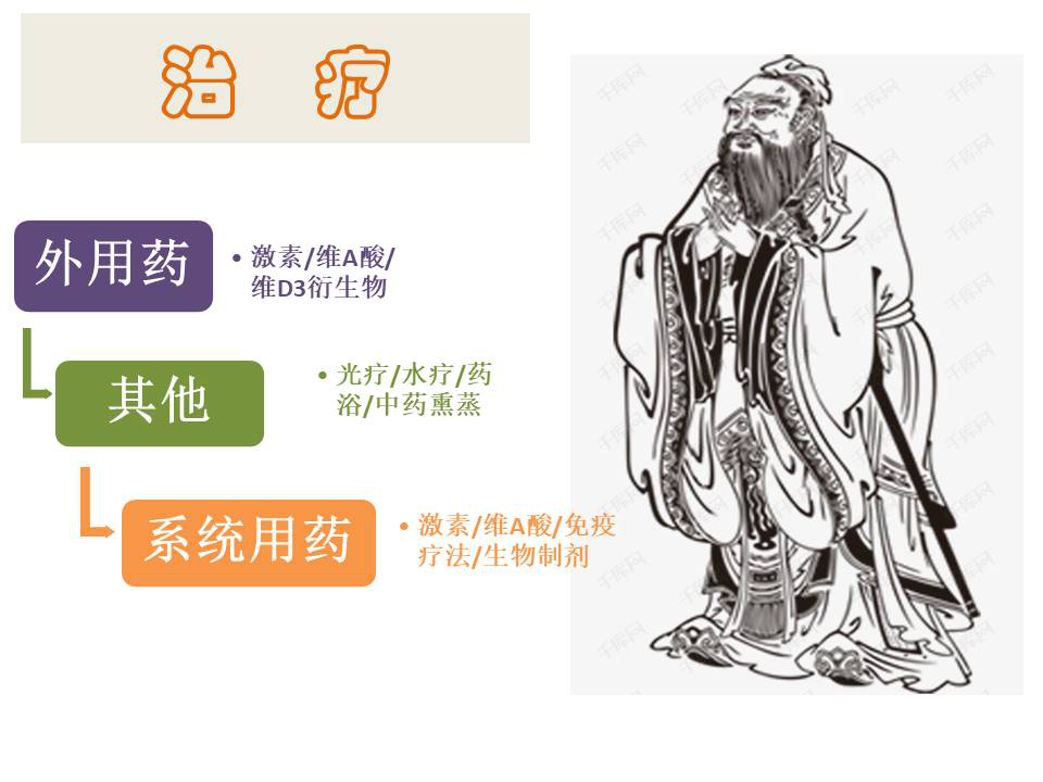 轻症银屑病患者可外用激素、维A酸、维生素D3衍生物等治疗。
