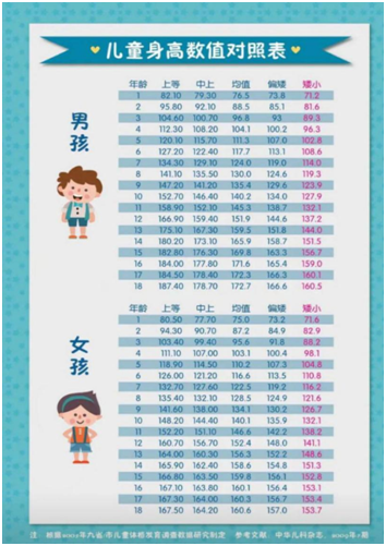 (1)与国家制定的身高标准表对照(如下图)