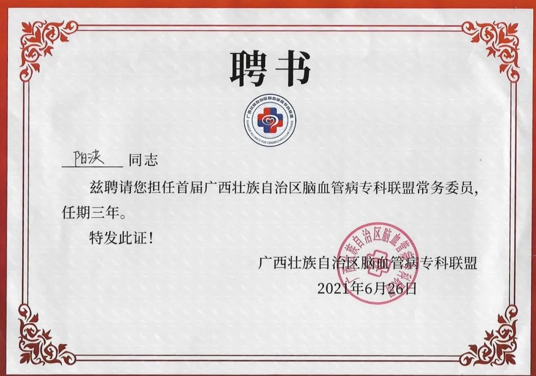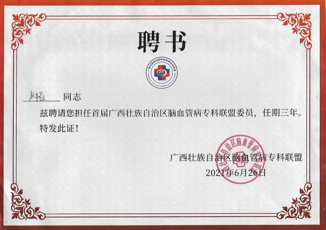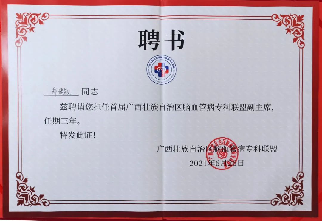 我院副院长郑捷敏教授当选为联盟副主席,神经内科阳洪主任当选为联盟常务委员,神经内科卢韬副主任医师当选为联盟委员。