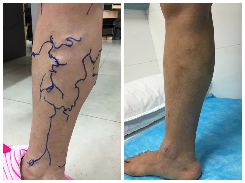 治疗后,赵女士腿部的“蚯蚓”不见了(右图)