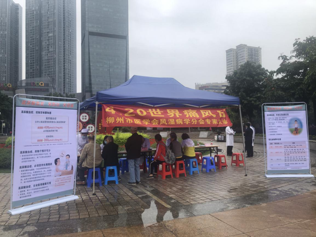 为了宣传和普及痛风疾病医学知识,引起社会及群众的广泛关注。2021年4月20日柳州市医学会风湿病学分会组织专家在市人民广场举办大型的义诊活动——4·20世界痛风日。