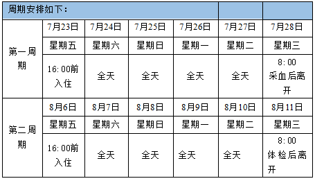 第二步(入组):各项体检合格并收到入组通知的志愿者项目时间安排如下: