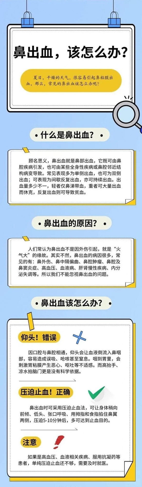 科普 | 夏季干燥,鼻出血该怎么办?仰头、高抬手……这些方法都不对! 2021-07-15 14:36系统 夏日炎热干燥鼻腔内粘膜比较脆弱容易出现流鼻血的情况仰头、高抬手这些方法都不对!如何才能有效抑制鼻出血呢?一起来看看
