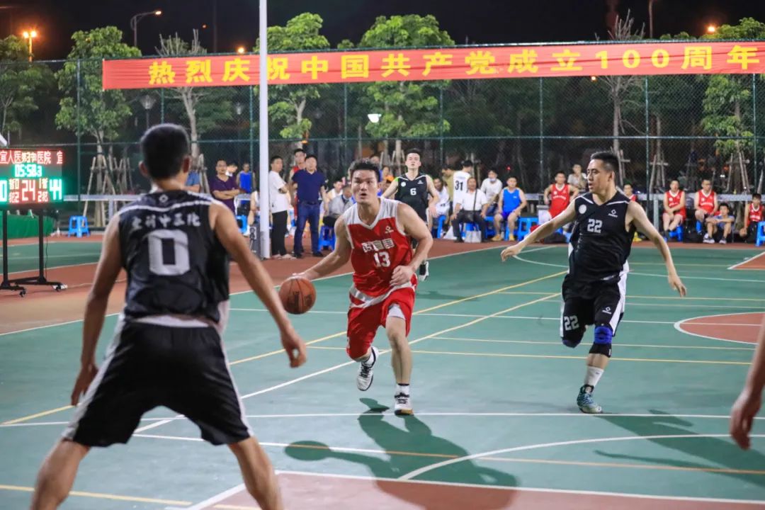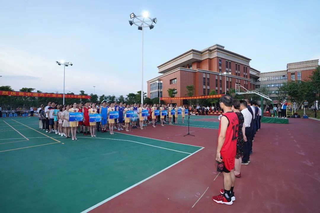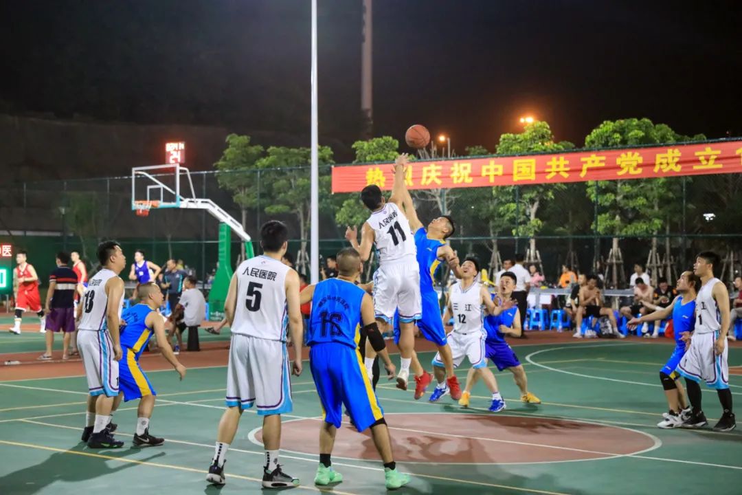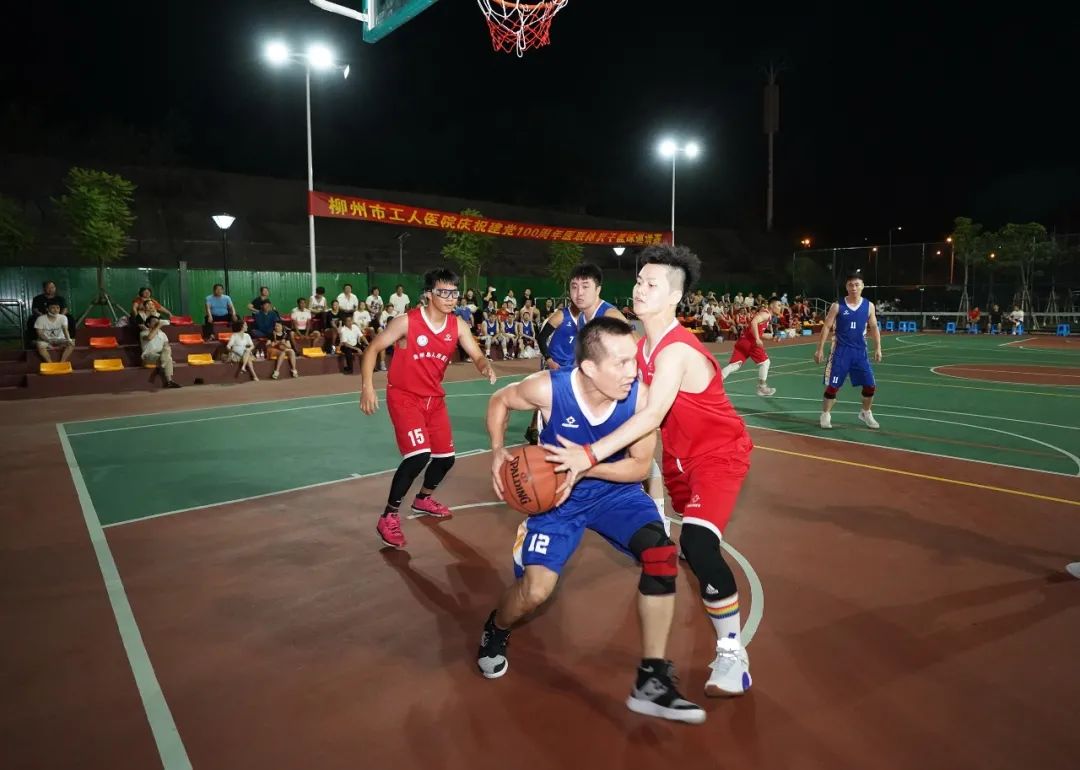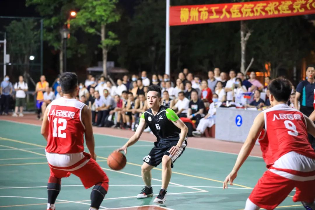柳州市工人医院庆祝中国共产党成立100周年医联体男子篮球邀请赛,6月18日晚,在新总院篮球场正式开幕。9支医联体医院代表队将在为期6天的比赛中展开交流和角逐。