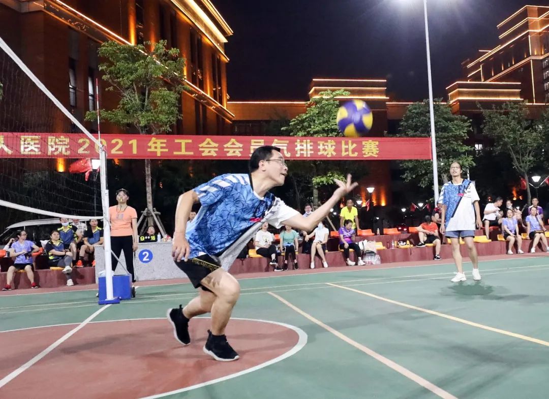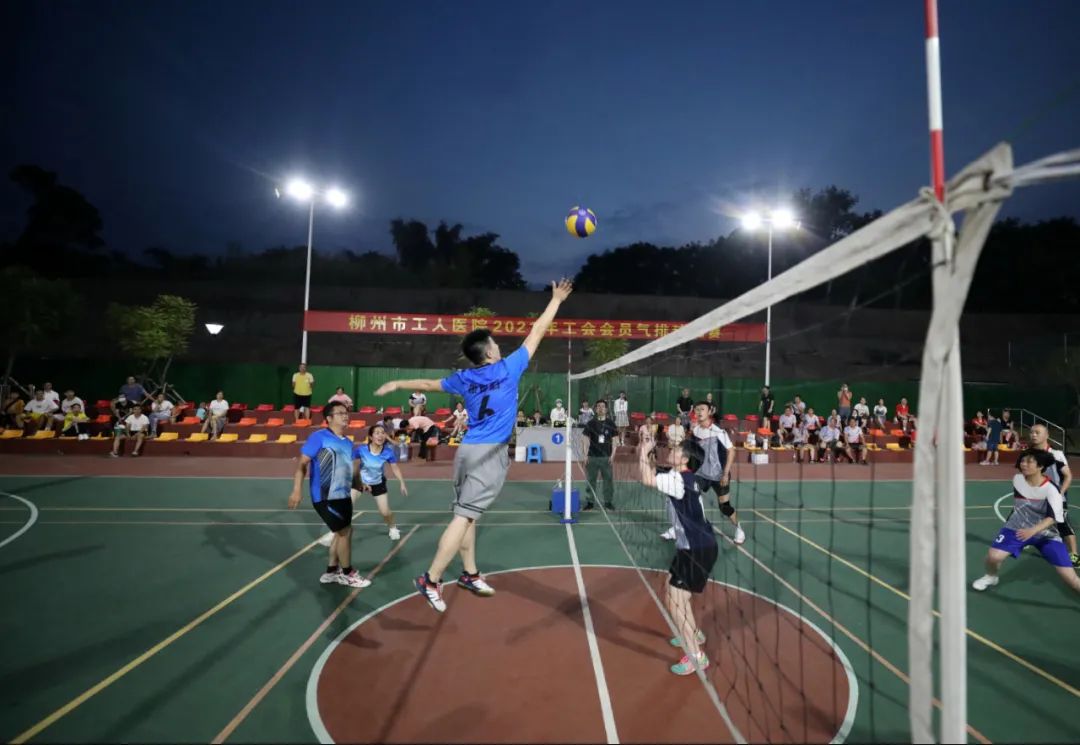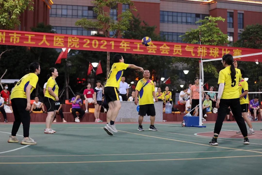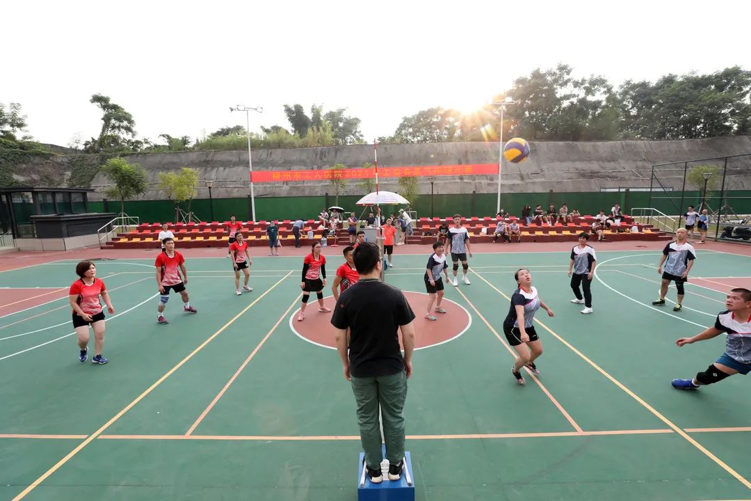 7月27日傍晚时分,柳州市工人医院新院区球场上热闹非凡,由医院工会主办的2021年工会会员气排球比赛正式开赛。