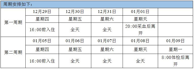 2)每位志愿者需要完成2个周期项目,体格筛查前3天需保证良好的生活作息和饮食习惯(如早睡、不做剧烈运动、不大量食用海鲜、动物内脏等);