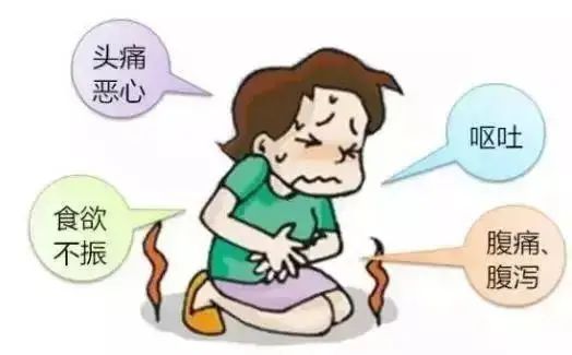 潜伏期多为6-12小时,主要表现为恶心、呕吐、腹泻、腹痛,发病3-4天后皮肤变黄,肝脾肿大,少数出现血红蛋白尿。病程一般2-6天。
