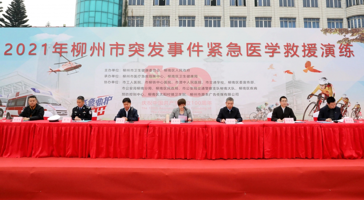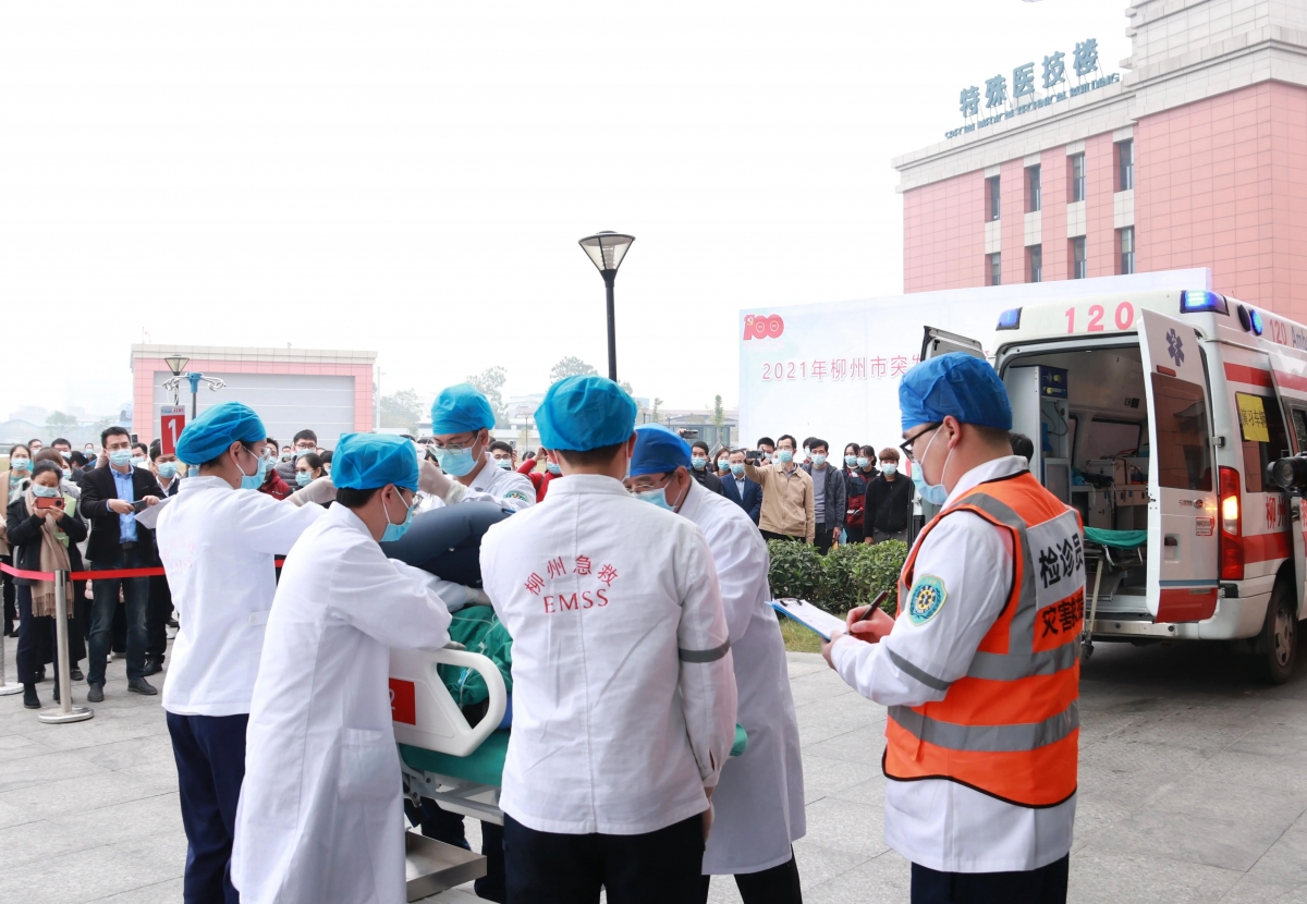 为检验在当前疫情背景下,各种突发事件发生时,各项医疗救援工作能否高速、高效、有序地进行,12月24日,柳州市卫生健康委员会联合柳州市柳南区政府,在柳州市交通学校举办了“2021年柳州市突发事件紧急医学救援暨柳南区医防协同联合救援演练”。