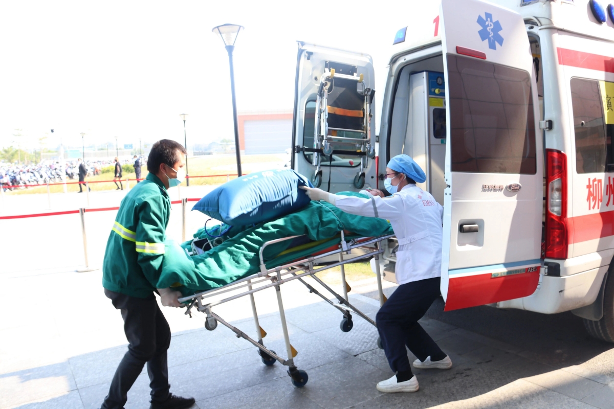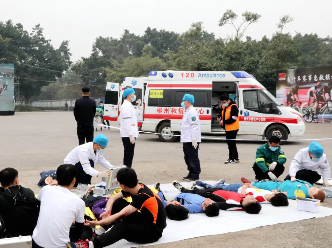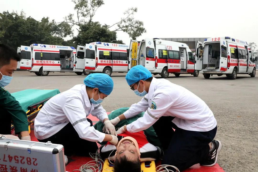 本次演练共派出8辆120救护车和8组医疗组参加,其中,柳州市工人医院派出3组救护单元;市柳铁中心医院派出2组救护单元;市潭中人民医院派出1组救护单元;太阳村镇卫生院派出1组救护单元;柳南区疾控中心1组。