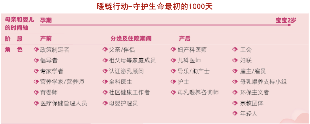 “暖链”是一项以保护、促进和支持母乳喂养为核心任务的全球行动。2022年世界母乳喂养周再次指出,所有提供母乳喂养咨询指导的卫生保健人员以及支持母乳喂养的社会各界,都应是暖链中的一环,需加强培训以及各环节之间的协作,为母婴家庭传递一致信息,帮助每一个母婴家庭获得及时的、满意的、有效的、持续的母乳喂养体验。