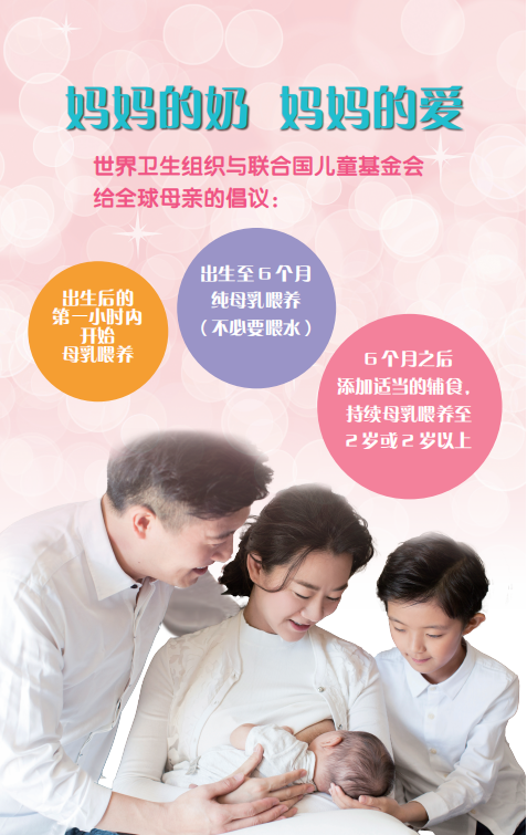 在生命之初就给婴儿喂哺母乳,不仅可以充分满足新生婴儿营养和免疫的需求,还有助于预防感染;母乳是链接母亲与孩子之间的亲密情感纽带,无论处于任何环境,母乳喂养都是能够保障婴儿食品安全的措施。