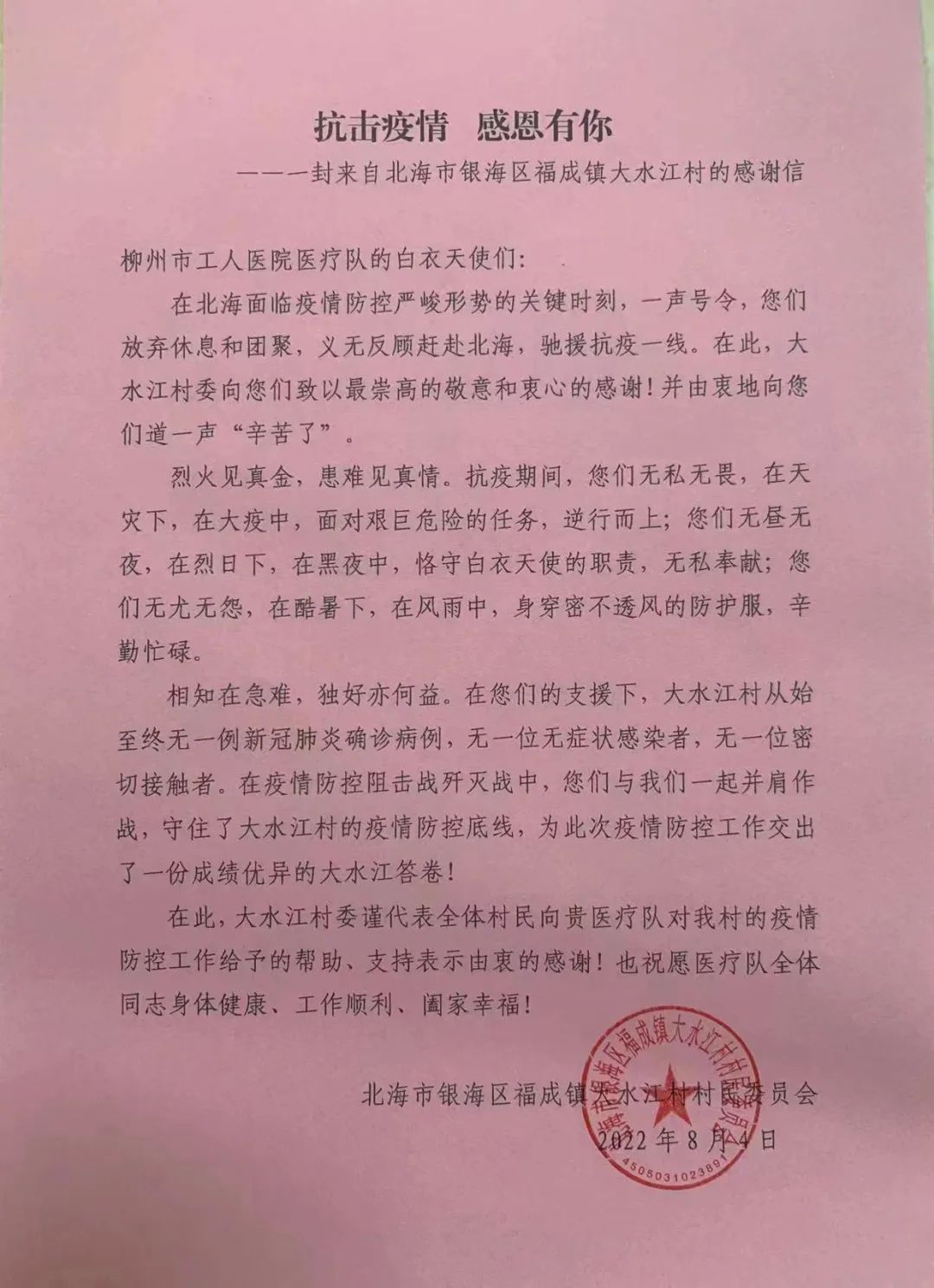 近日,柳州市工人医院陆续收到4封来自北海市的特殊感谢信,其中3封来自北海市福成镇,字里行间流露出真情实意。