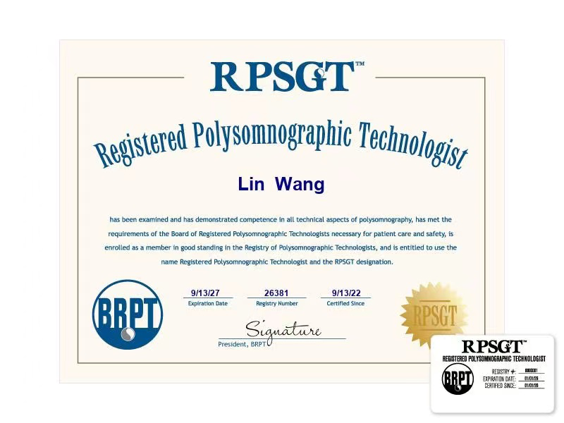 喜讯!我院呼吸与危重症医学科王琳获得“国际注册多导睡眠技师(RPSGT)资质”