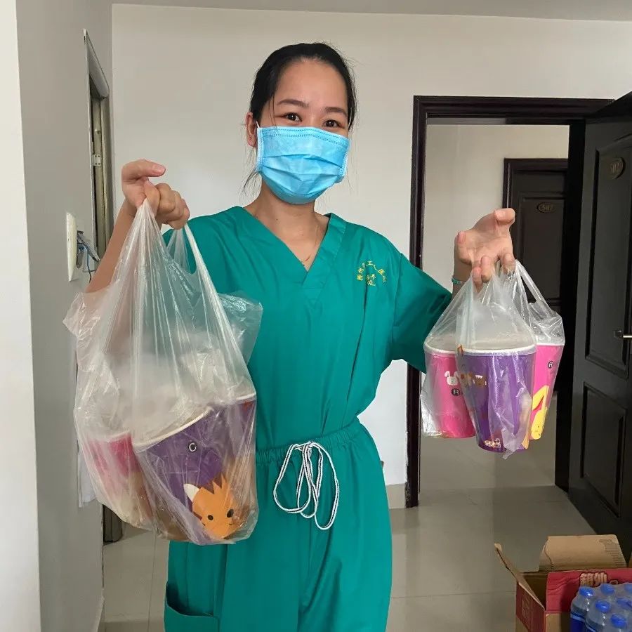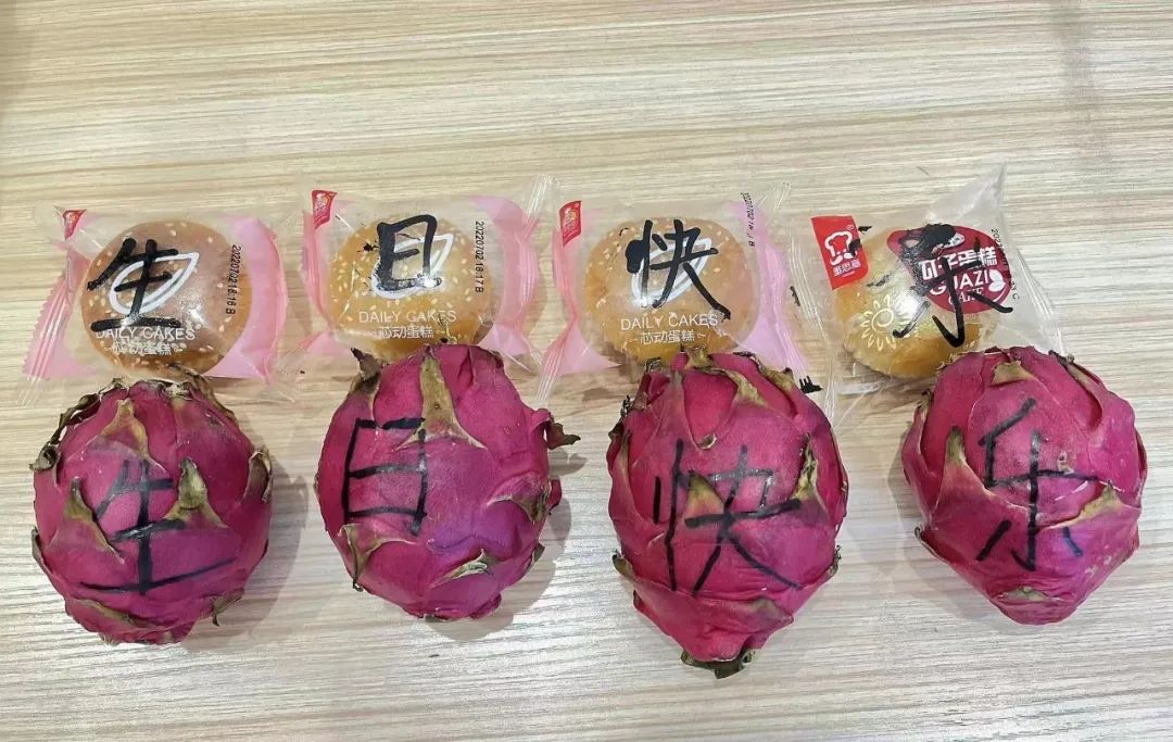 2022年8月4日,是中华民族的传统节日——七夕,这是一个具有具浪漫色彩的节日,这一天,也是柳州市工人医院支援崇左(宁明)抗疫医疗队队员全科医学科护士罗海薇的生日,由于医疗队的支援点分散在宁明县城的各条街道,队友们平时都是聚少离多,大家纷纷在各自的支援点上给队友送上祝福。当地的居民知道这一天是小罗的生日后还特意给她送上了火龙果和小蛋糕。