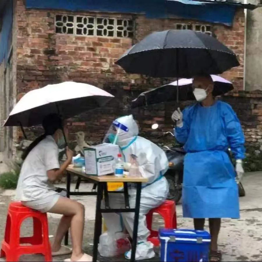在工作之余,队员们也与当地居民建立起了良好的关系。天气酷热,有清凉的绿豆汤;晚上饿了,有香甜的木菠萝;下雨了,居民帮撑起雨伞;入户核酸采样,还有“专职的司机”。