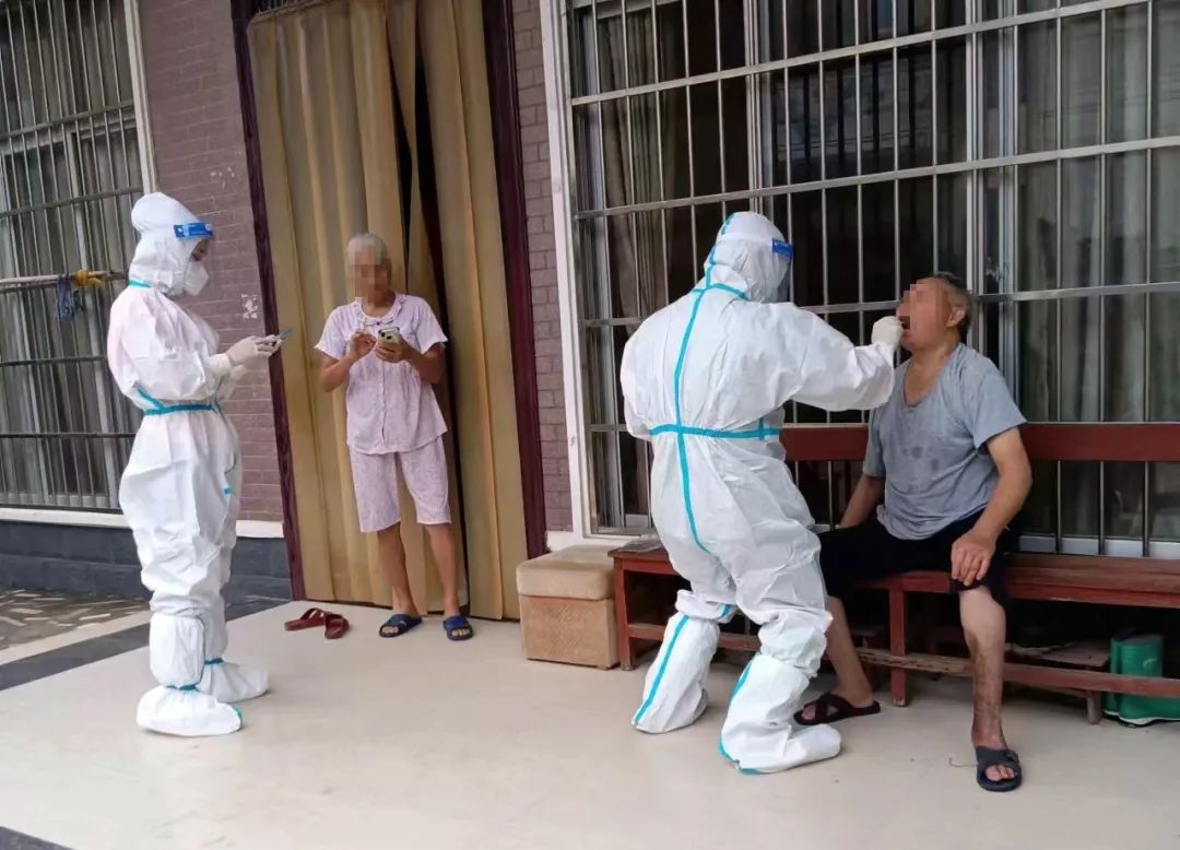莫凡睿(右二)在和同事上门为居民采集核酸
