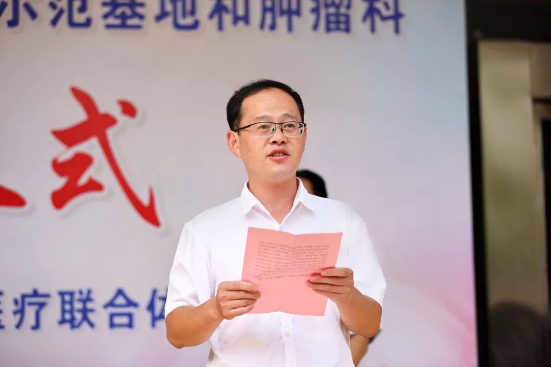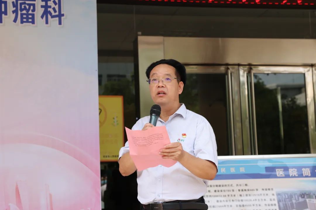 武宣县委常委、县人民政府副县长张新贵,柳州市工人医院院长、肿瘤学科基层提升项目示范基地负责人黄海欣,柳州市工人医院副院长易新平,武宣县卫健局党组书记、局长熊杨,武宣县人民医院党委书记陈舒、院长庾佳南以及柳州市工人医院肿瘤专家团队、武宣县人民医院领导班子、医务人员代表参加了仪式。仪式由武宣县人民医院院长庾佳南主持。