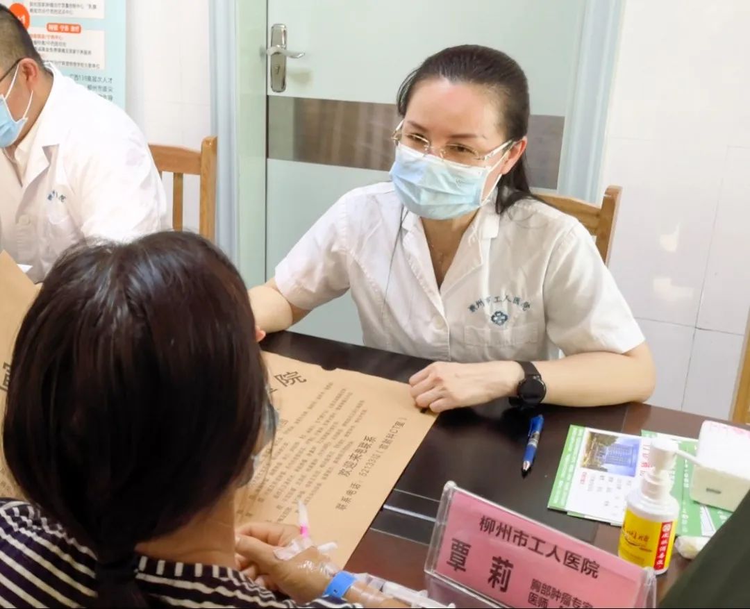 仪式后,在肿瘤学科基层提升项目负责人黄海欣教授带领下,柳州市工人医院肿瘤专家团队为当地群众开展义诊服务,向大家讲解防癌科普知识,答疑解惑并提供诊疗方案,为肿瘤患者送上了实实在在的健康福利。
