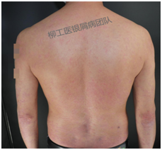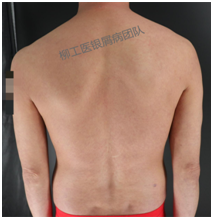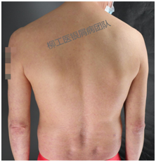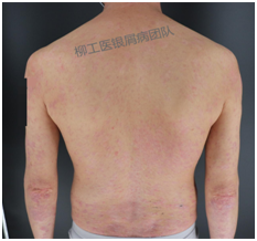 张大伯,2002年经历了车祸,心态崩溃,饮酒抑郁,而后出现了银屑病皮损,并发关节疼痛,到柳州某医院就医未见好转,辗转至南宁、广州就医,有所好转但仍反复发作。后听信乡下医生,采用土药方治疗,症状也未得到控制。2008年大儿子出生,经济和精神压力越来越大,使病情进一步加重,并发了葡萄膜炎致眼睛视力急速下降至看不清眼前物体,关节变形也越来越明显,甚至影响到日常生活。再加上家庭变故,每天更是忙碌于工作和家庭琐事,病情未得以控制。了解到柳工医皮肤科成立银屑病诊疗中心,遂来此进行住院治疗,医生和护士都给予了特别的关怀呵护,进行了生物制剂联合其他规范化的治疗,皮损清楚明显,关节疼痛、葡萄膜炎都得到了很好的控制,出院后继续维持生物制剂进行治疗,病情无反复。