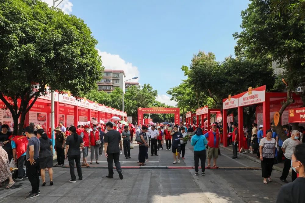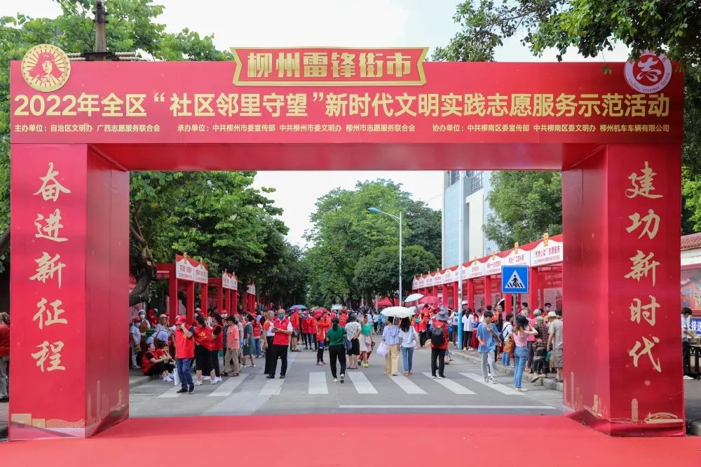 为深入学习贯彻落实习近平新时代中国特色社会主义思想,贯彻落实习近平总书记关于学雷锋志愿服务系列重要指示精神,7月11日上午,由自治区文明办 、广西志愿服务联合会主办,中共柳州市委宣传部、中共柳州市委文明办、柳州市志愿服务联合会承办的2022年全区“社区邻里守望”新时代文明实践志愿服务示范活动,在柳南区革新路七区“雷锋街市”举行。现场约200多名身穿“红马甲”的志愿者为市民提供志愿服务,他们组成了街市一道靓丽风景。