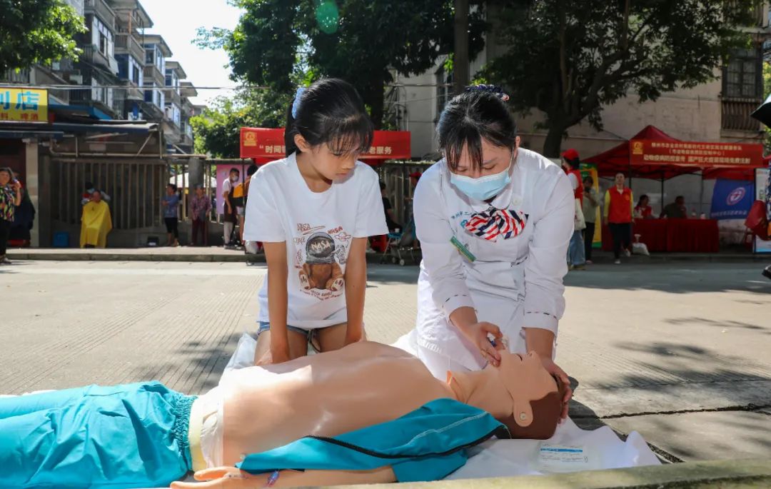“阿姨,我教您一些应急救护方法吧。”在市工人医院志愿服务队义诊点急救技能培训现场,我院志愿者向群众展示了紧急情况下如何做心肺复苏,普及了常见意外、常见急症的应急救护知识。志愿者殷莉表示,通过这个活动让群众了解急救知识,学会急救技能,挽救生命,希望每个家庭至少有一名“急救员”,减少突发伤害。