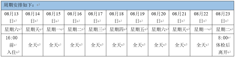第二步(入组):各项体检合格并收到入组通知的志愿者项目时间安排如下:
