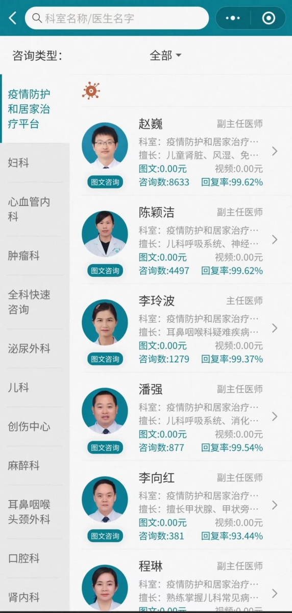 选择在线咨询——》疫情防护和居家治疗平台——》选择专科医生问诊