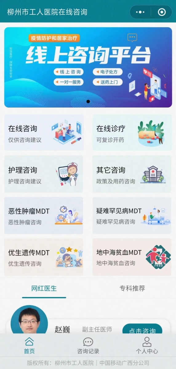 @所有人,“阳”了怎么办?柳州市工人医院互联网医院“疫情防护和居家治疗平台”帮你忙!