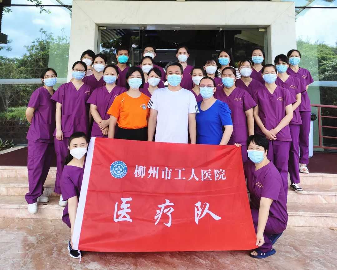 7月18日,柳州市工人医院副院长凌宙贵带领柳州市第四批支援北海医疗队出征,工人医院有67名队员随队出发(核酸采集队48人,检测组7人,隔离酒店治疗组医生6人、护士6人)。