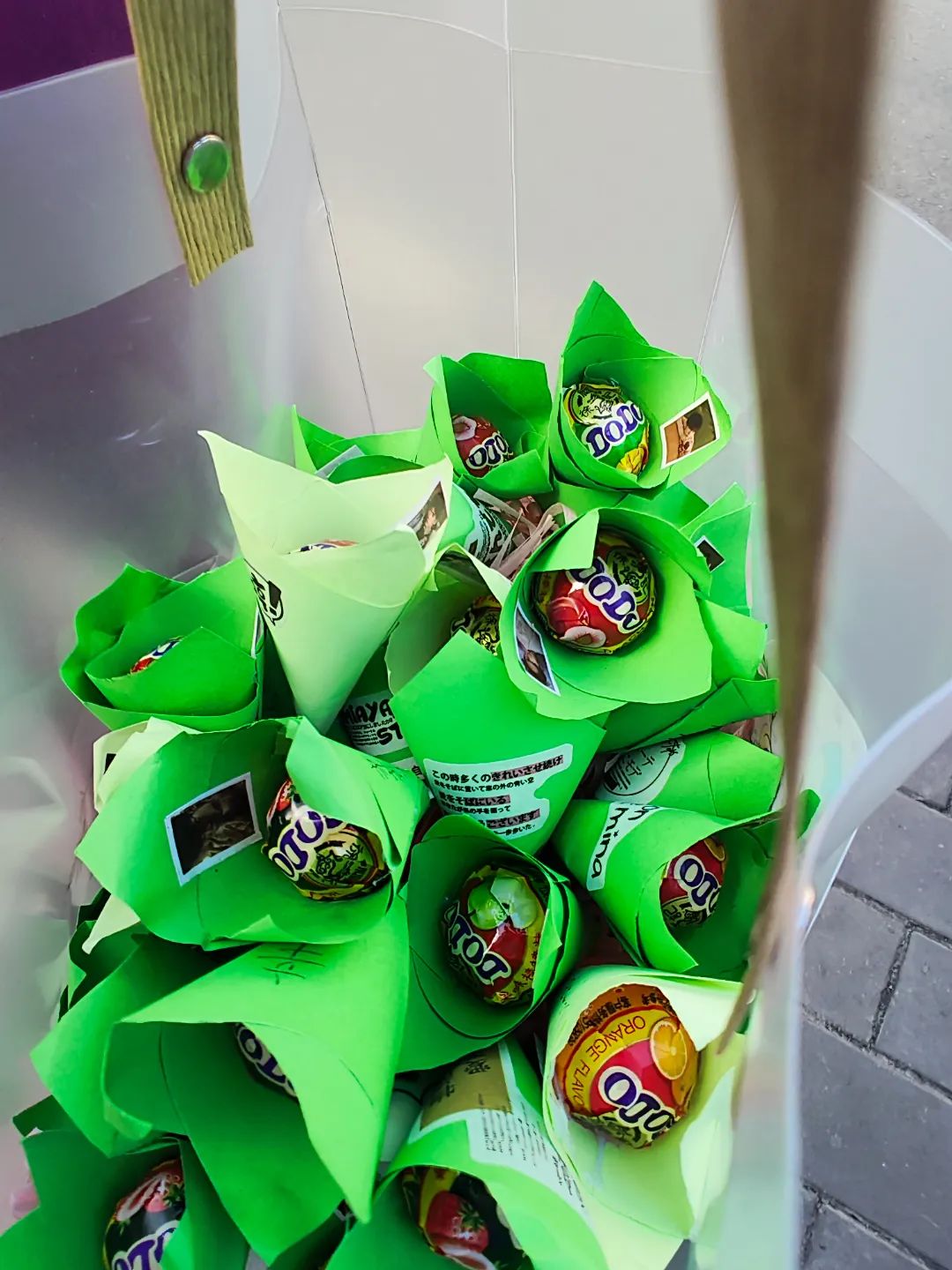 小朋友亲手制作的棒棒糖花,请志愿者转交我们的采集队员,感谢信上稚嫩的笔画写下了对我们支援工作的感谢与支持。