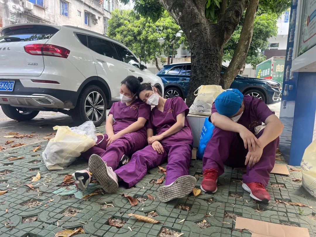 她们用毅力和体力与时间赛跑,与群众共同筑起了坚实的“防疫墙”,在高温下的“全副武装”,就是她们最美的样子!她们累到席地而睡,她们背后日夜的坚守,当使命成为一种坚守,当睡眠成为一种奢侈,多么让人敬佩,又如此令人心疼。抗疫一线的“超美睡姿”,说的就是她们吧!