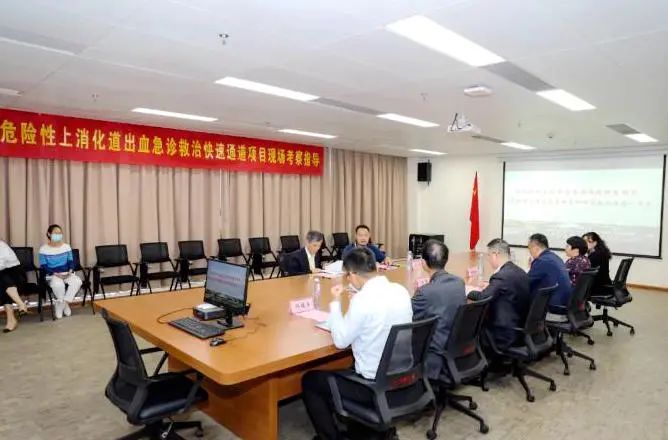 今年年初,我院启动急性上消化道出血急诊救治快速通道项目建设,院领导高度重视、大力支持,在医务科的协助下,组建了由急诊医学科消化内科内镜诊疗室、普外科、介入治疗室、麻醉科等组成的MDT团队,在完善项目管理制度、优化诊疗流程的基础上,通过横向加强院内多学科协作,纵向推进医联体和救治网络上下联动,开通了“一站式”快速救治通道,实现了各学科优势互补、相互支撑的诊疗模式。