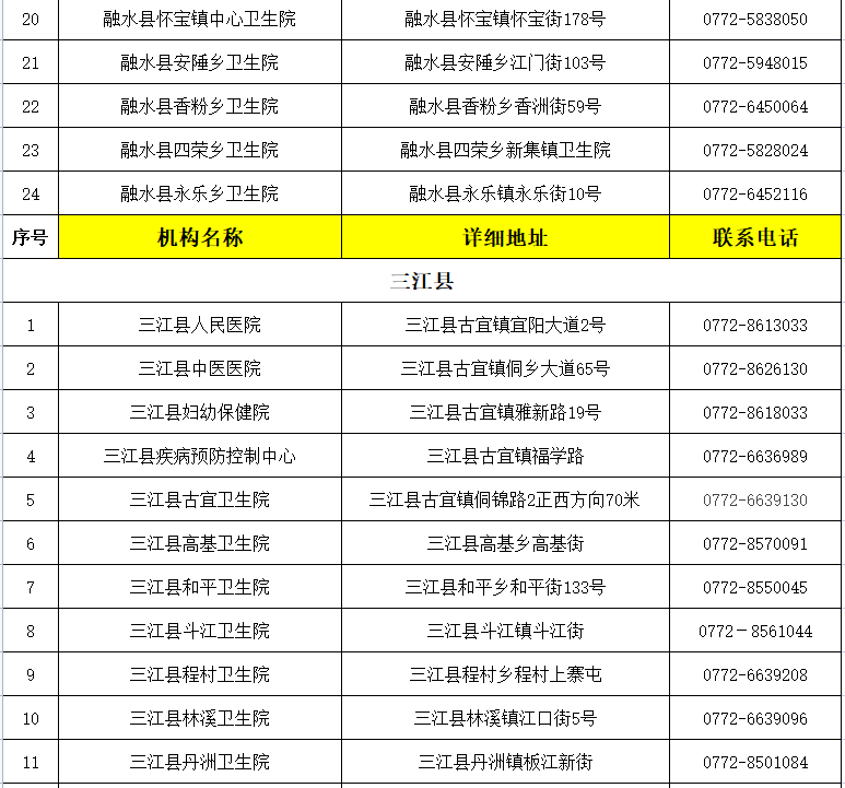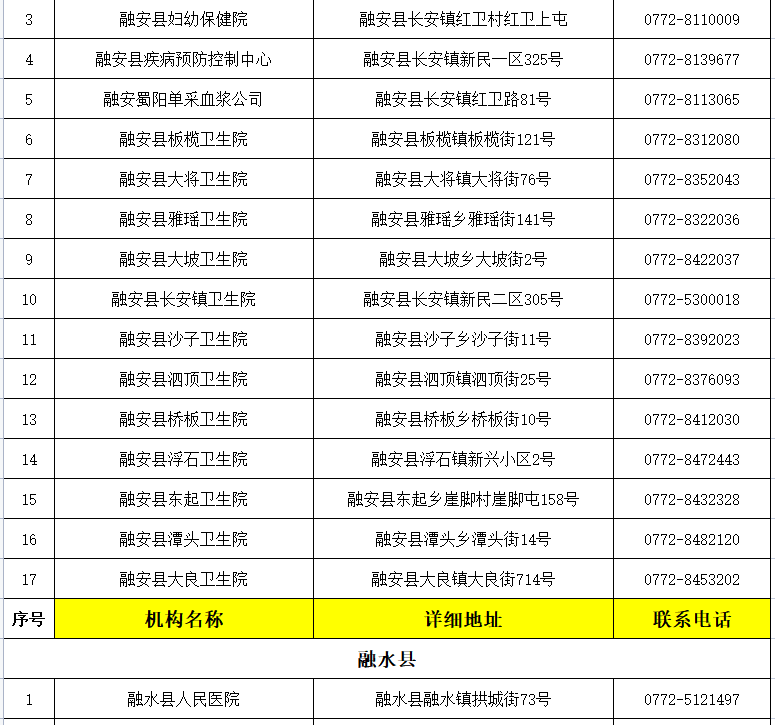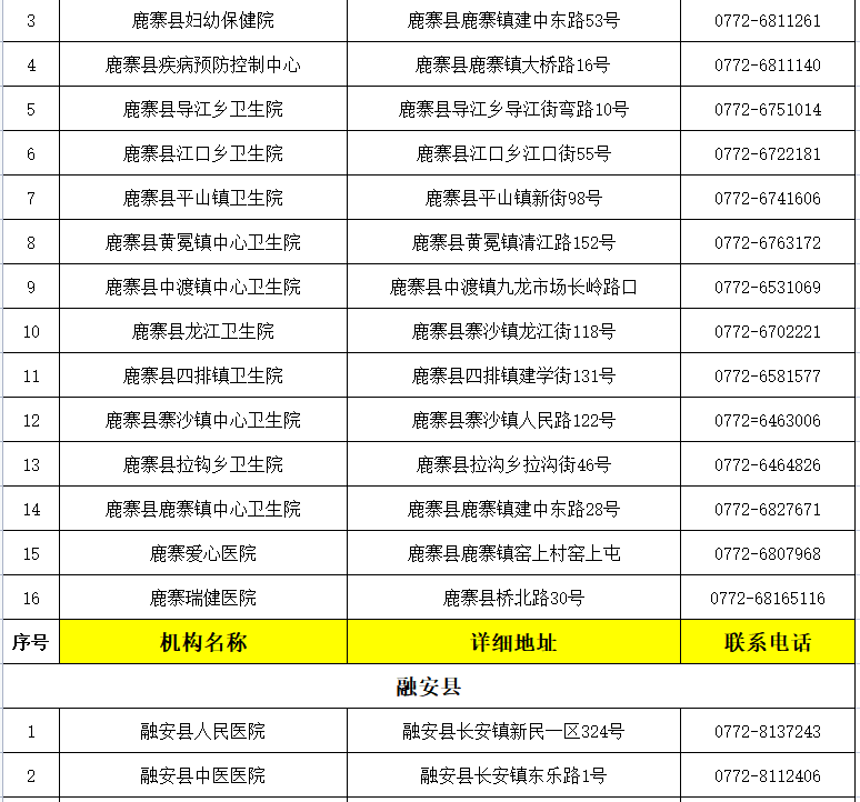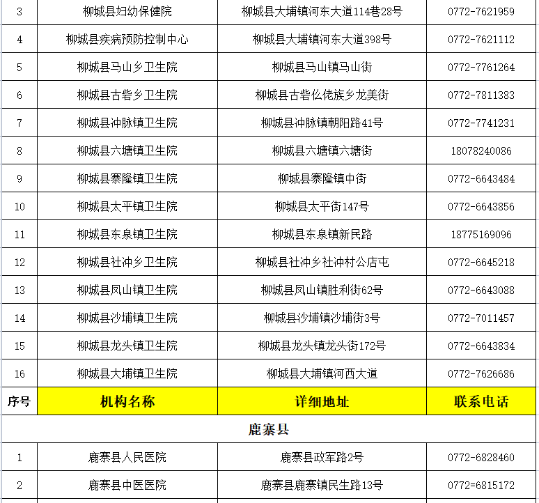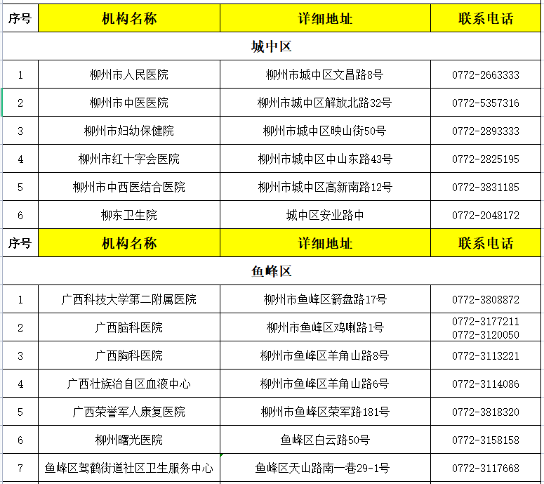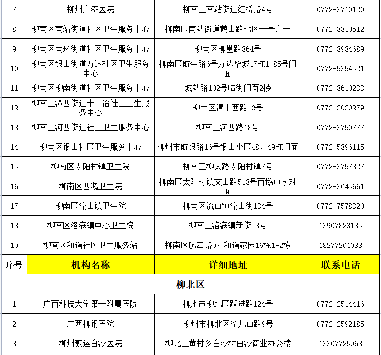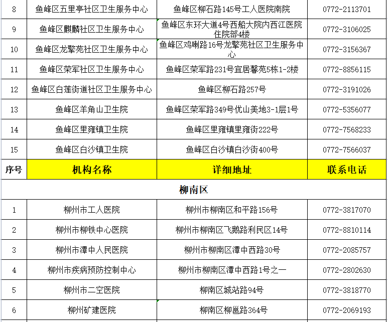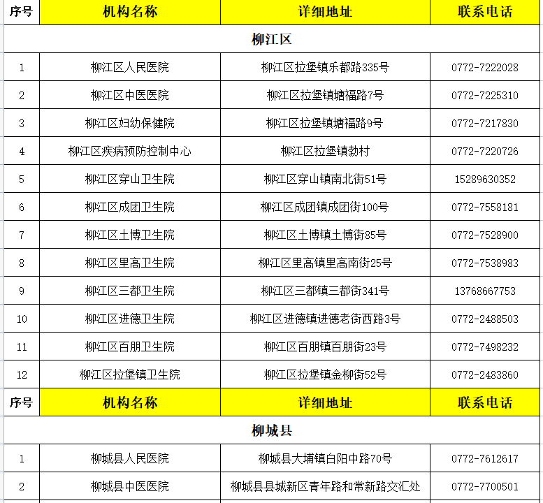 为完善艾滋病检测网络,方便有需要的群众进行艾滋病检测,根据自治区党委办公厅自治区人民政府办公厅关于印发《广西壮族自治区防治艾滋病攻坚工程 (2021—2025年) 实施方案》的通知要求,现将柳州市艾滋病检测机构信息公布如下: