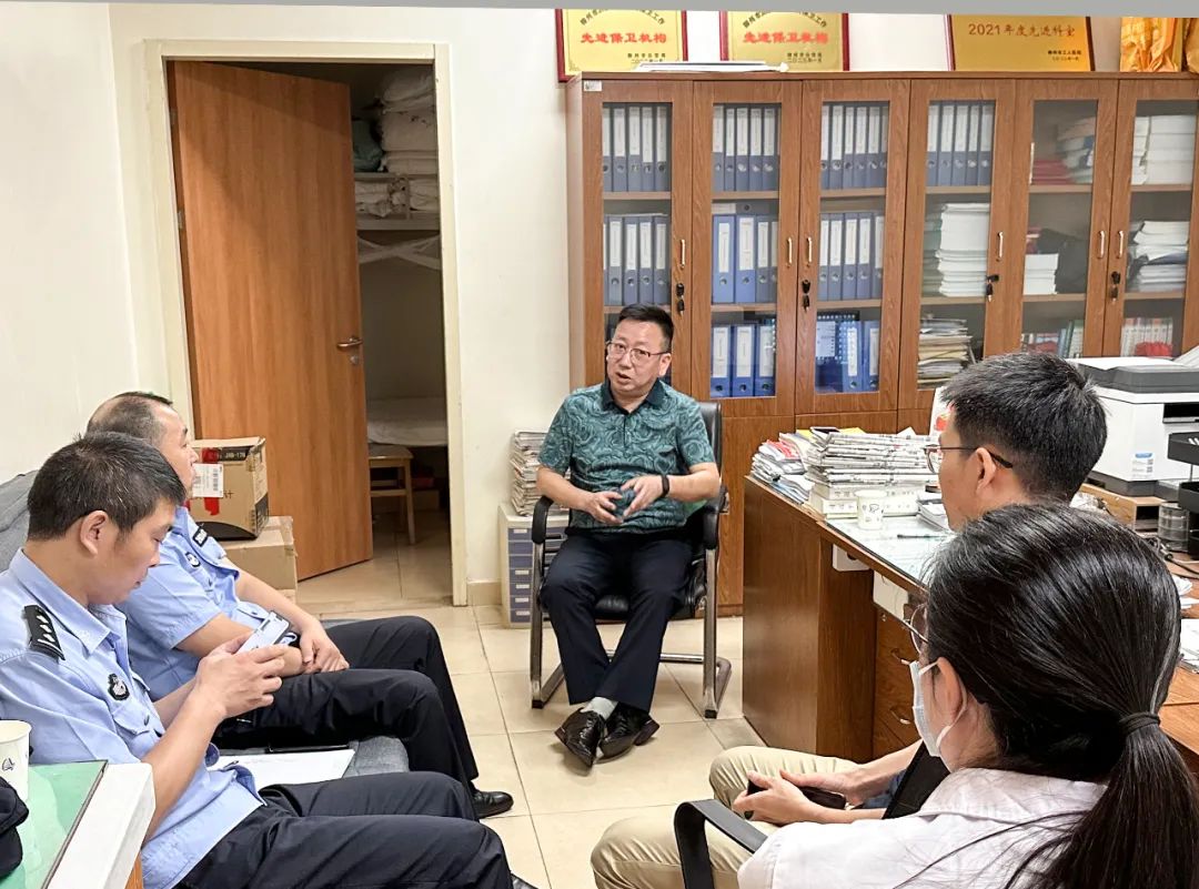 朱亚东(中)与辖区公安民警进行医患纠纷风险研判