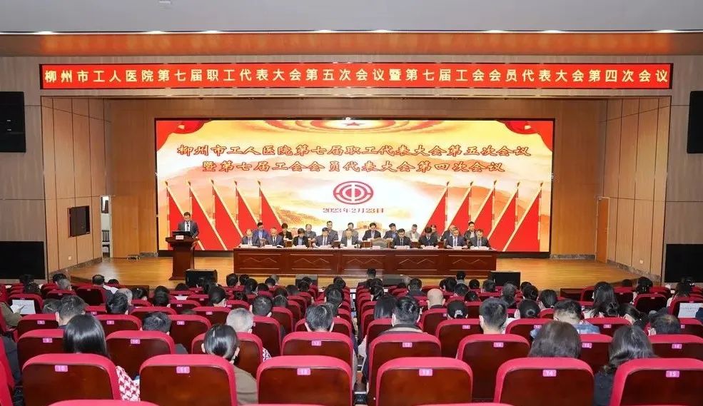 2月23日下午,柳州市工人医院第七届职工代表大会第五次会议暨第七届工会会员代表大会第四次会议在总院4楼学术报告厅胜利召开。医院全体领导班子成员、职工代表、列席代表齐聚一堂,共商医院发展大事。