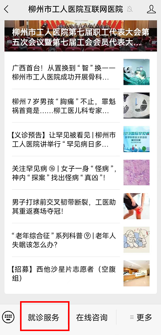 搜索并关注“柳州市工人医院互联网医院”微信公众号,点击就诊服务 → 展开全部功能 → 点击“病案复印寄递”。