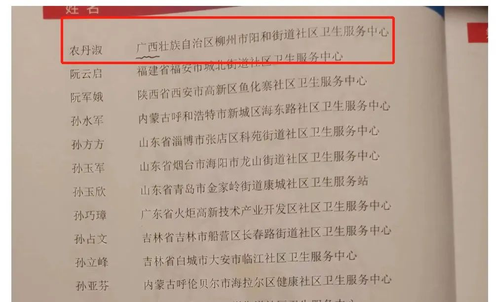 大会上,中国社区卫生协会还组织开展了“新冠疫情防控工作中表现突出的社区卫生工作者”通报表扬大会,柳州市共有5人上榜,中心护士长农丹淑因在新冠疫情防控工作中表现突出名列其中,光荣上榜!