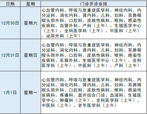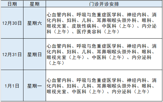 据《国务院办公厅关于2024年部分节假日安排的通知》(国办发明电〔2023〕7号)精神,2024年1月1日元旦放假,与周末连休,放假期间柳州市工人医院门急诊工作安排如下: